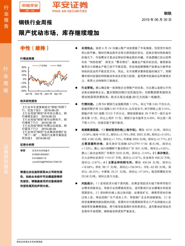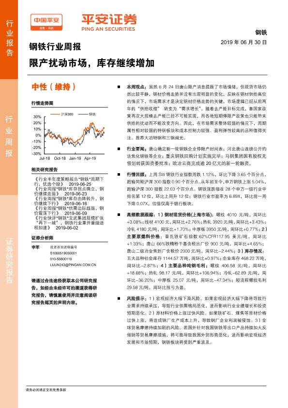 【平安证券】【20190630】20190630-平安证券-钢铁行业周报:限产扰动市场,库存继续增加-5页