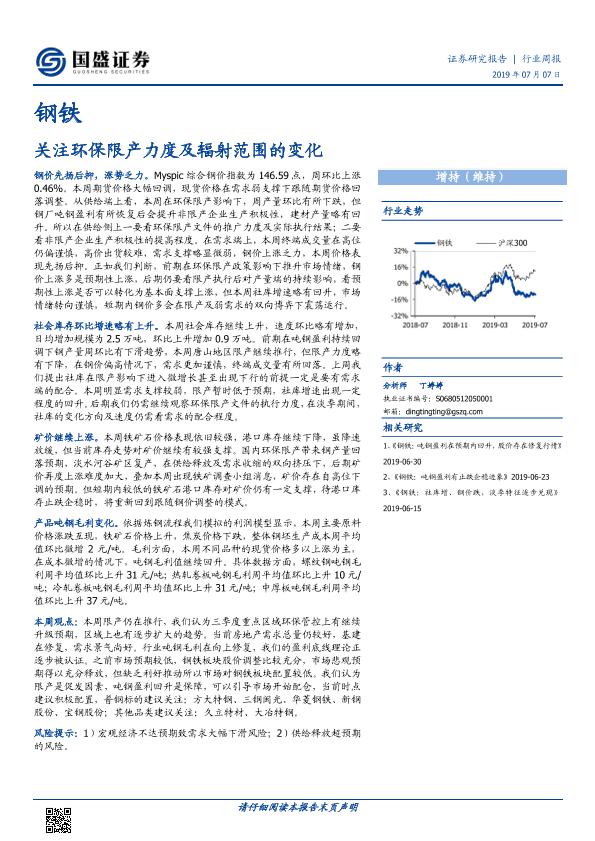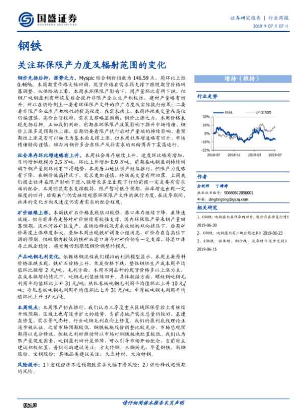【国盛证券】【20190707】20190707-国盛证券-钢铁行业周报:关注环保限产力度及辐射范围的变化-10页