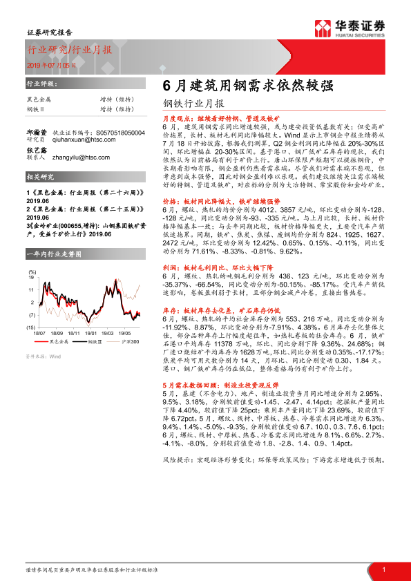 【华泰证券】【20190705】20190705-华泰证券-钢铁行业月报:6月建筑用钢需求依然较强-30页