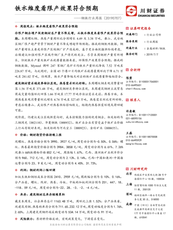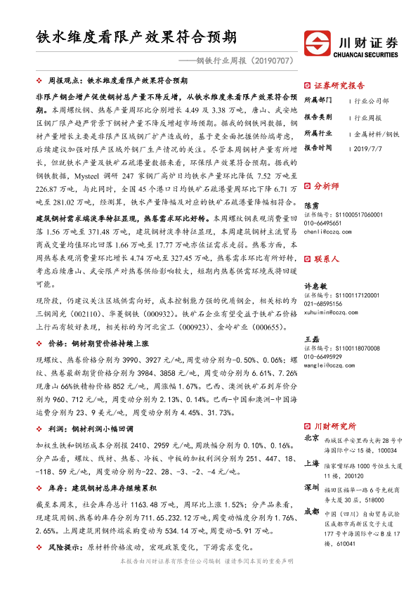 【川财证券】【20190707】钢铁行业周报:铁水维度看限产效果符合预期-23页