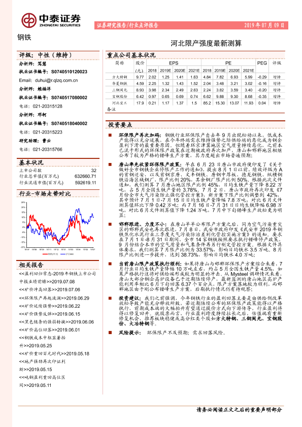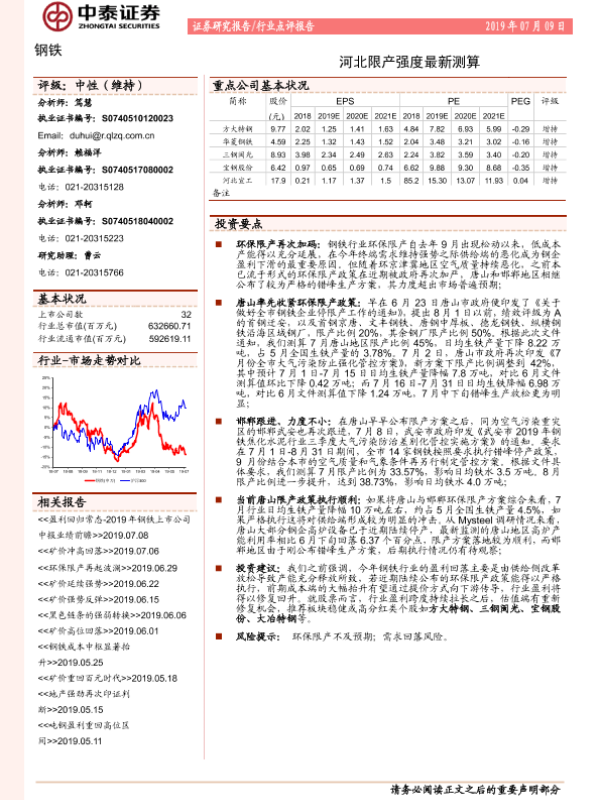 【中泰证券】【20190709】中泰证券-钢铁行业点评报告:河北限产强度最新测算-4页