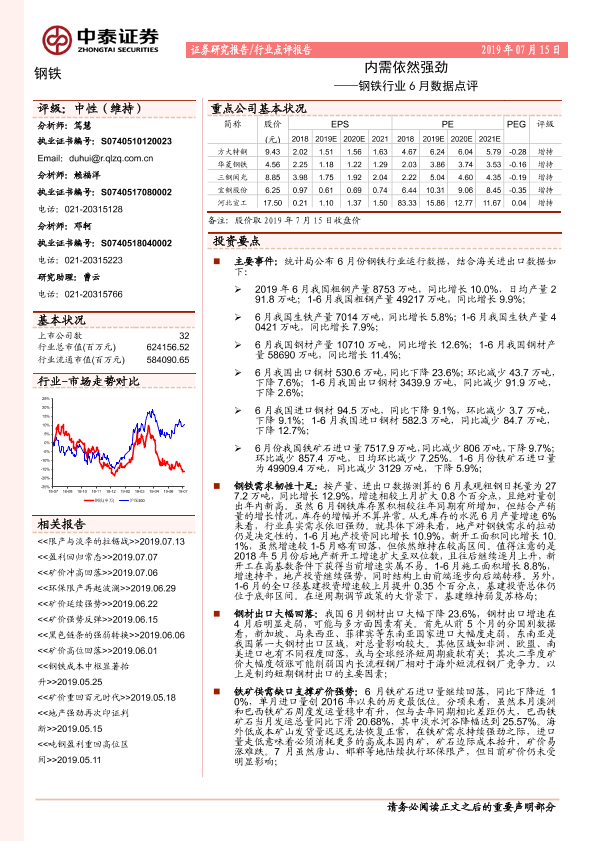 【中泰证券】【20190715】钢铁行业6月数据点评:内需依然强劲-5页