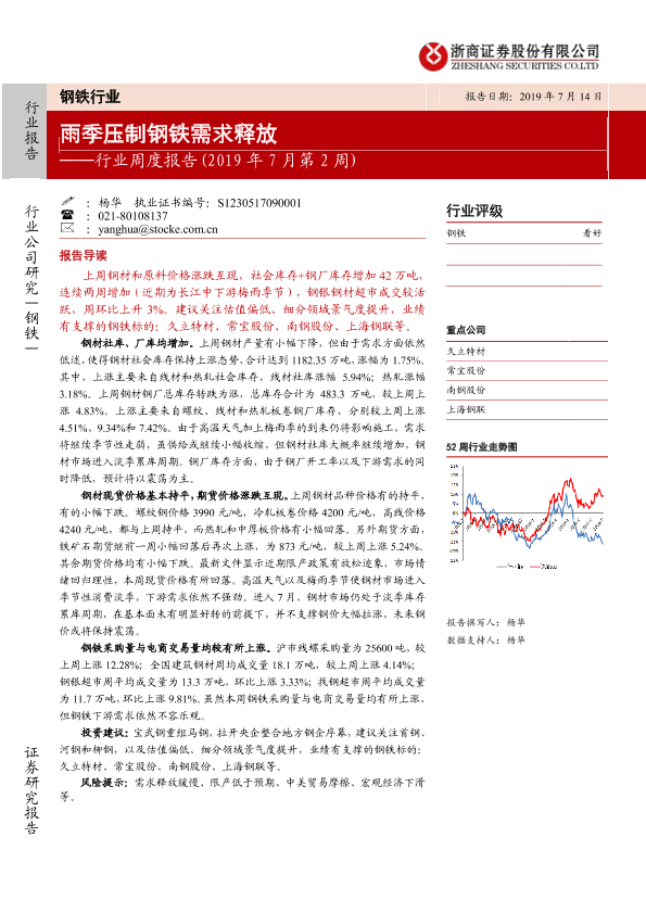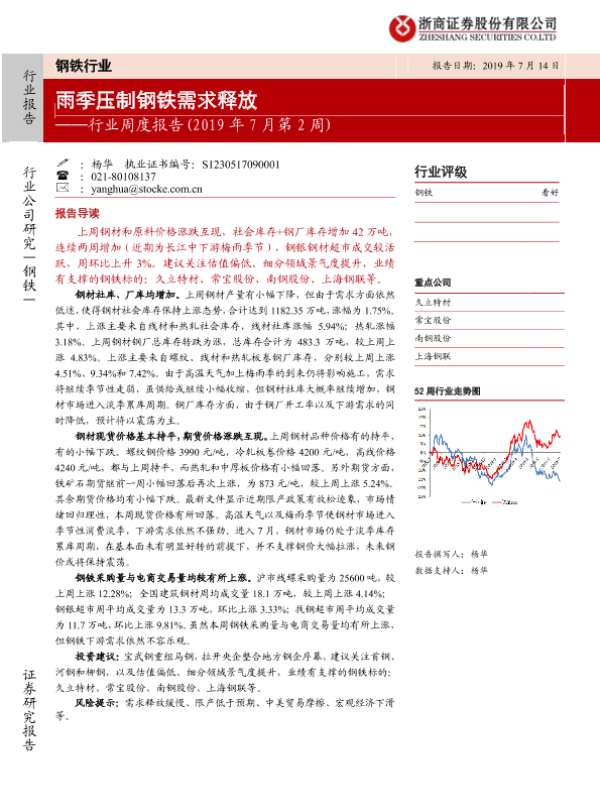 【浙商证券】【20190714】2019年7月第2周钢铁行业周度报告:雨季压制钢铁需求释放-18页