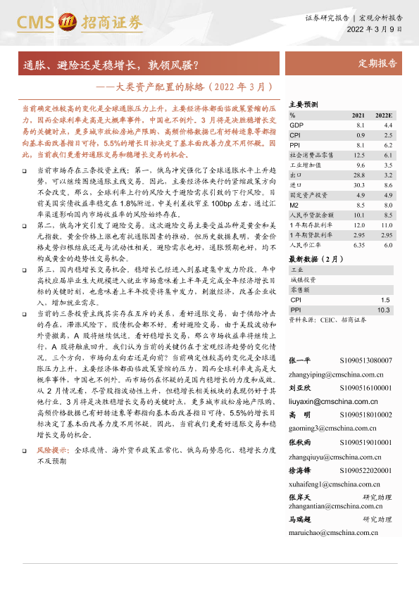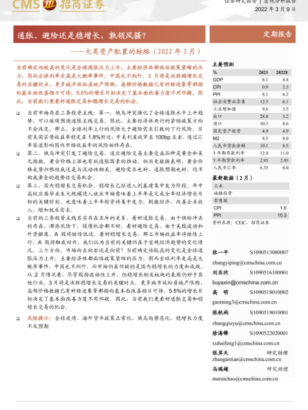 【海通证券】【20220309】大类资产配置的脉络(2022年3月):通胀、避险还是稳增长,孰领风骚?-17页