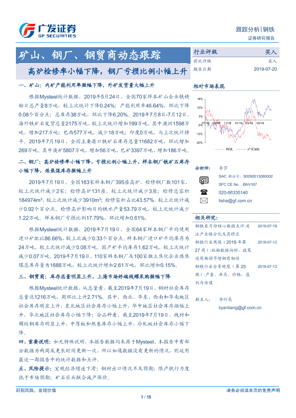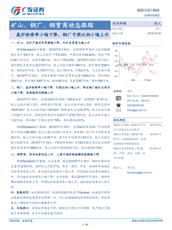【广发证券】【20190720】矿山、钢厂、钢贸商动态跟踪:高炉检修率小幅下降,钢厂亏损比例小幅上升-15页
