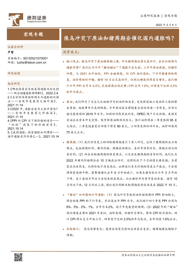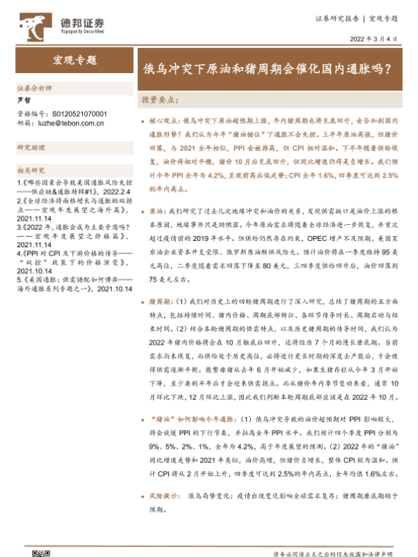 【德邦证券】【20220304】俄乌冲突下原油和猪周期会催化国内通胀吗?-16页