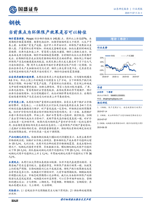 【国盛证券】【20190721】20190721-国盛证券-钢铁行业周报:当前焦点为环保限产效果是否可以转佳-10页