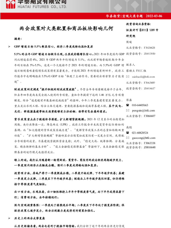 【华泰期货】【20220306】宏观大类专题:两会政策对大类配置和商品板块影响几何-20页