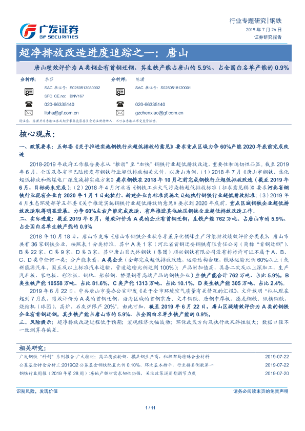 【广发证券】【20190726】超净排放改造进度追踪之一:唐山-11页