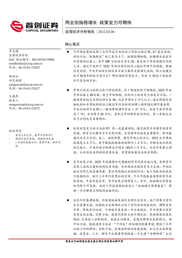 【首创证券】【20220306】宏观经济分析报告:两会剑指稳增长,政策发力可期待-18页