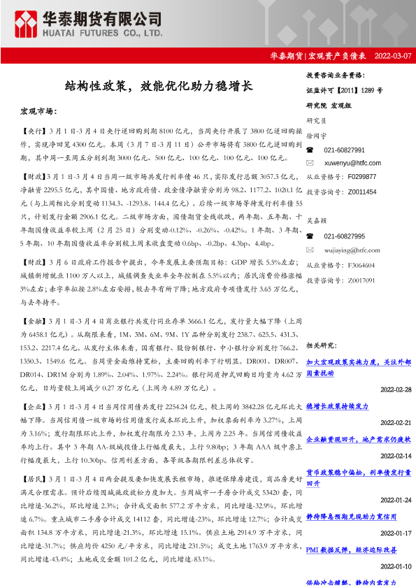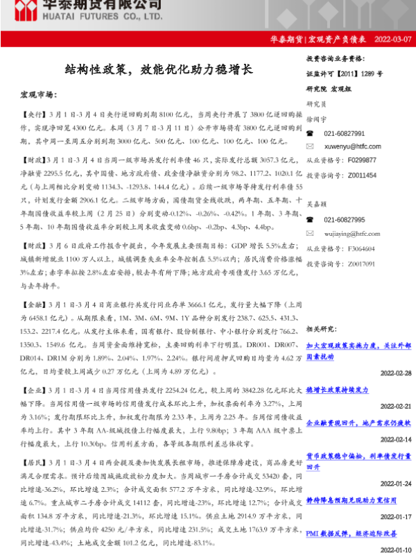 【华泰期货】【20220307】宏观资产负债表:结构性政策,效能优化助力稳增长-18页