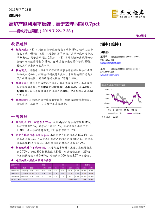 【光大证券】【20190728】20190728-光大证券-钢铁行业周报:高炉产能利用率反弹,高于去年同期0.7pct-9页