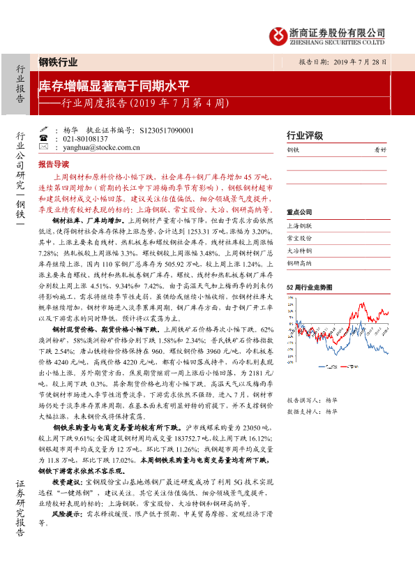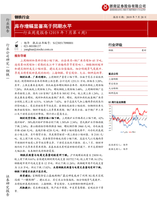 【浙商证券】【20190728】20190728-浙商证券-钢铁行业周度报告:库存增幅显著高于同期水平-17页