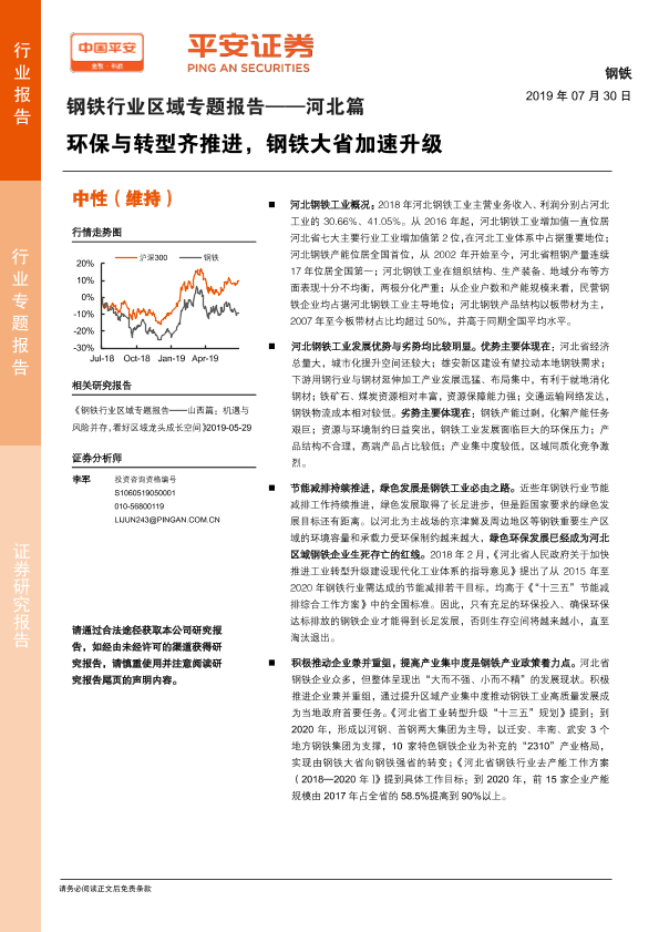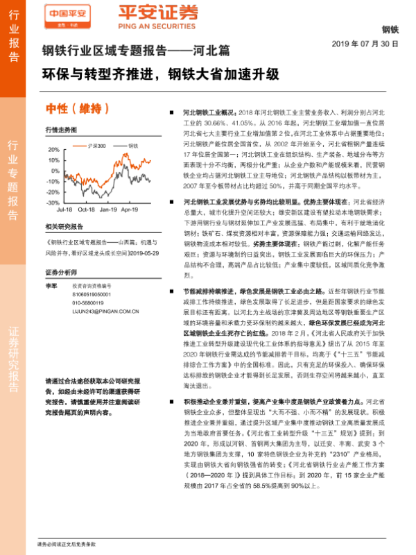 【平安证券】【20190730】钢铁行业区域专题报告——河北篇:环保与转型齐推进,钢铁大省加速升级-38页