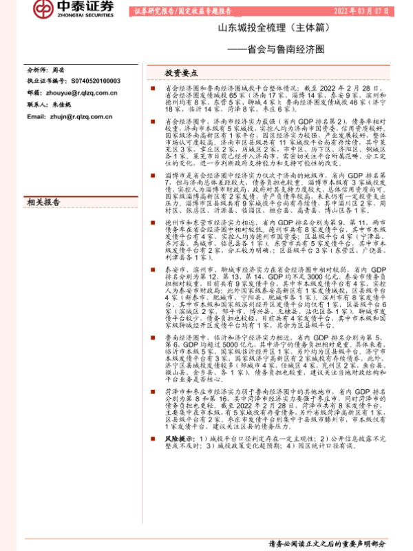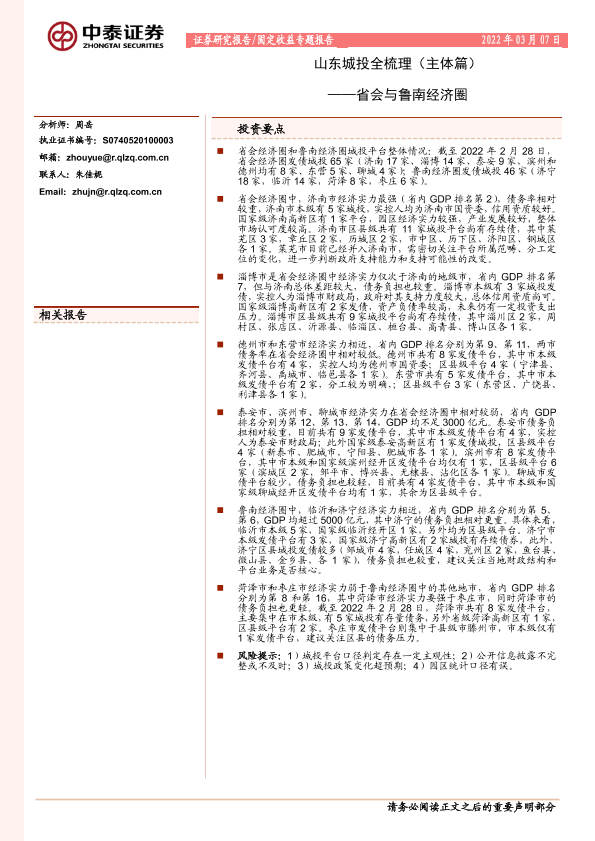 【中泰证券】【20220307】山东城投全梳理(主体篇):省会与鲁南经济圈-31页