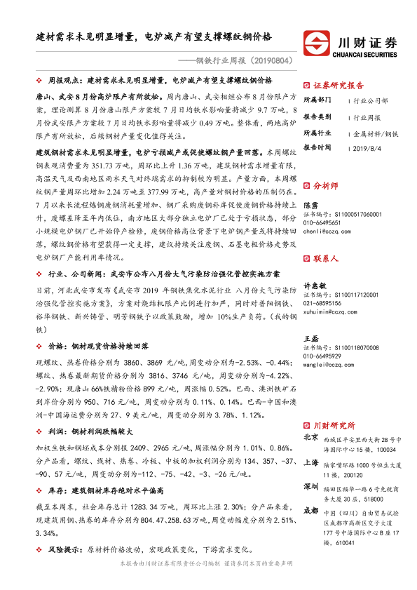 【川财证券】【20190804】20190804-川财证券-钢铁行业周报:建材需求未见明显增量,电炉减产有望支撑螺纹钢价格-23页