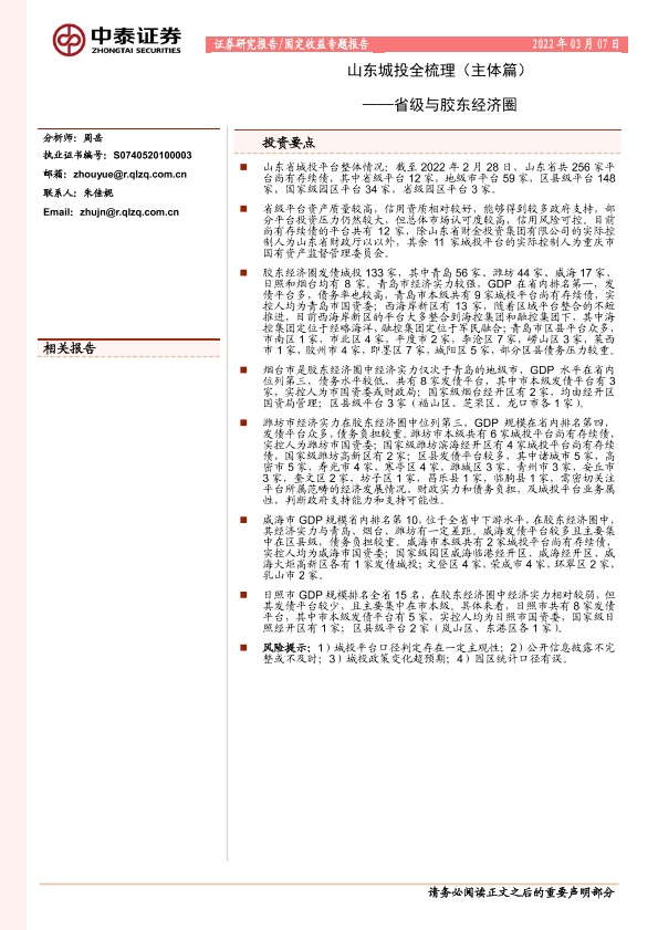 【中泰证券】【20220307】山东城投全梳理(主体篇):省级与胶东经济圈-36页