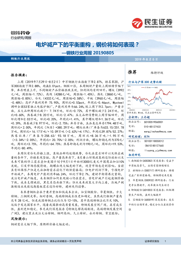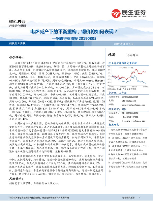 【民生证券】【20190805】电炉减产下的平衡重构,钢价将如何表现?—钢铁行业周报 20190805-29页