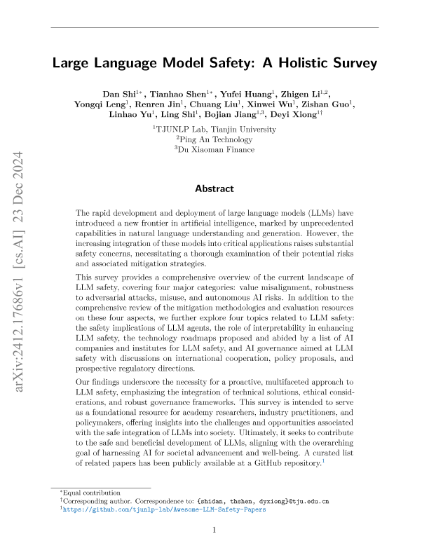 【TJUNLP Lab】【202412】Large Language Model Safety A Holistic Survey-158页