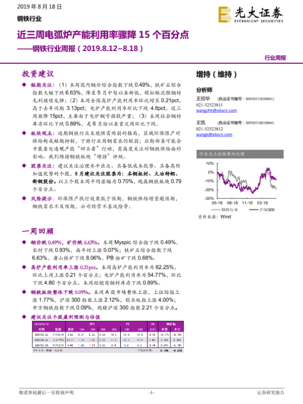 【光大证券】【20190818】钢铁行业周报:近三周电弧炉产能利用率骤降15个百分点-9页