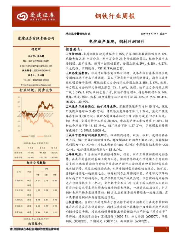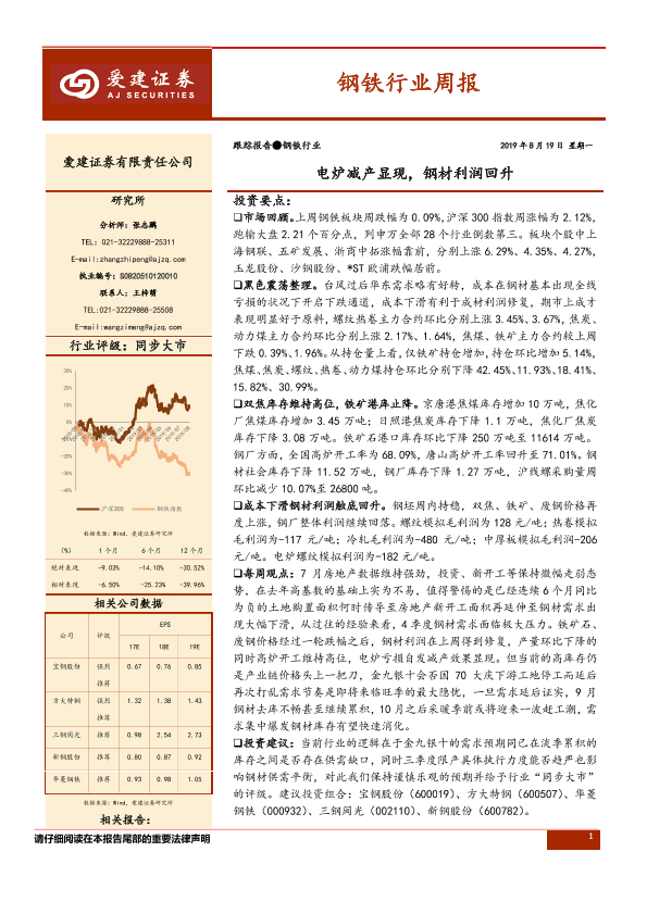 【爱建证券】【20190819】20190819-爱建证券-钢铁行业周报:电炉减产显现,钢材利润回升-23页