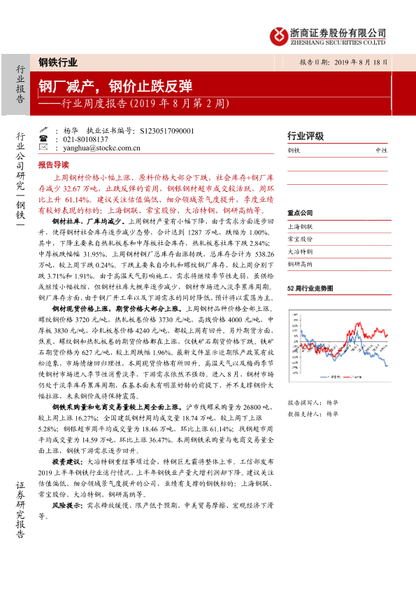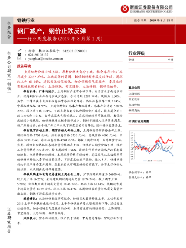 【浙商证券】【20190818】20190818-浙商证券-钢铁行业周度报告(2019年8月第2周):钢厂减产,钢价止跌反弹-17页