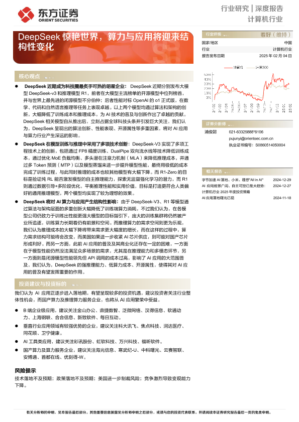 【东方证券】【20250204】计算机行业深度报告 —— DeepSeek惊艳世界,算力与应用将迎来结构性变化-18页