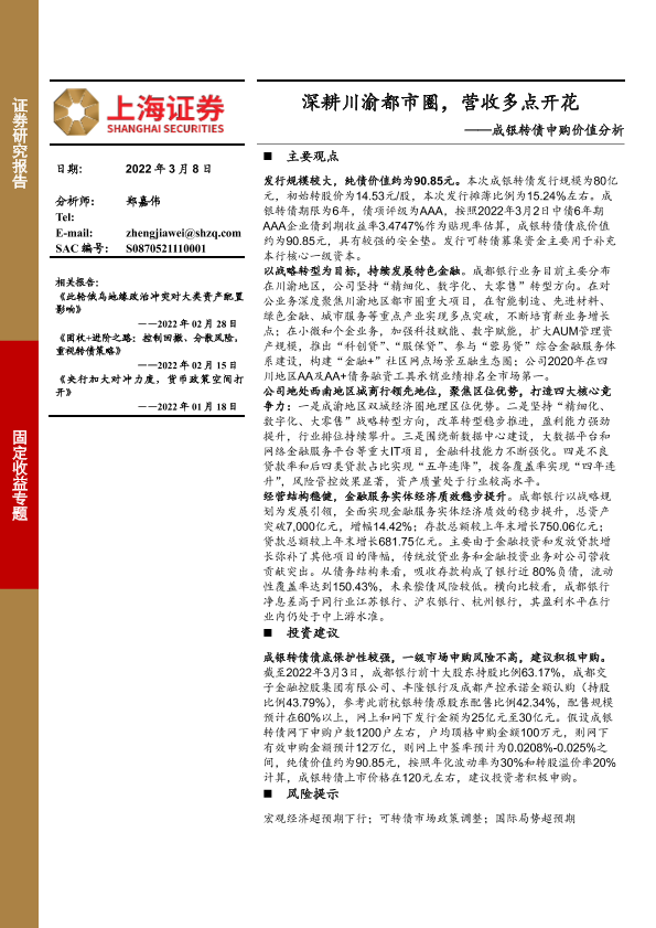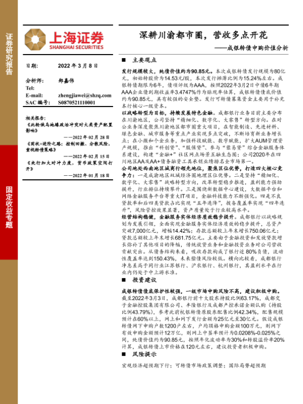 【上海证券】【20220308】成银转债申购价值分析:深耕川渝都市圈,营收多点开花-23页