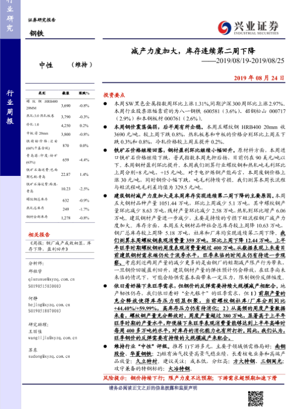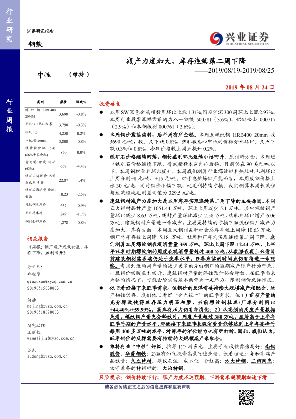 【兴业证券】【20190824】减产力度加大,库存连续第二周下降-17页