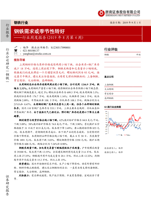 【浙商证券】【20190901】钢铁行业周度报告(2019年8月第4周):钢铁需求或季节性转好-17页