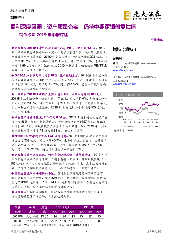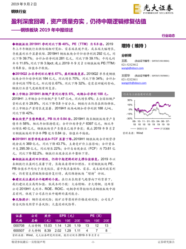 【光大证券】【20190902】钢铁板块2019年中报综述:盈利深度回调,资产质量夯实,仍待中期逻辑修复估值-15页