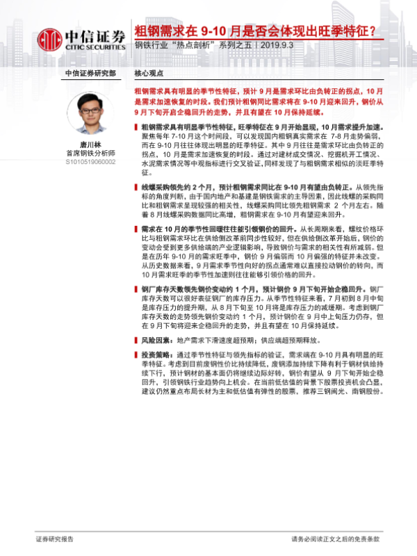 【中信证券】【20190903】粗钢需求在9-10月是否会体现出旺季特征?-11页