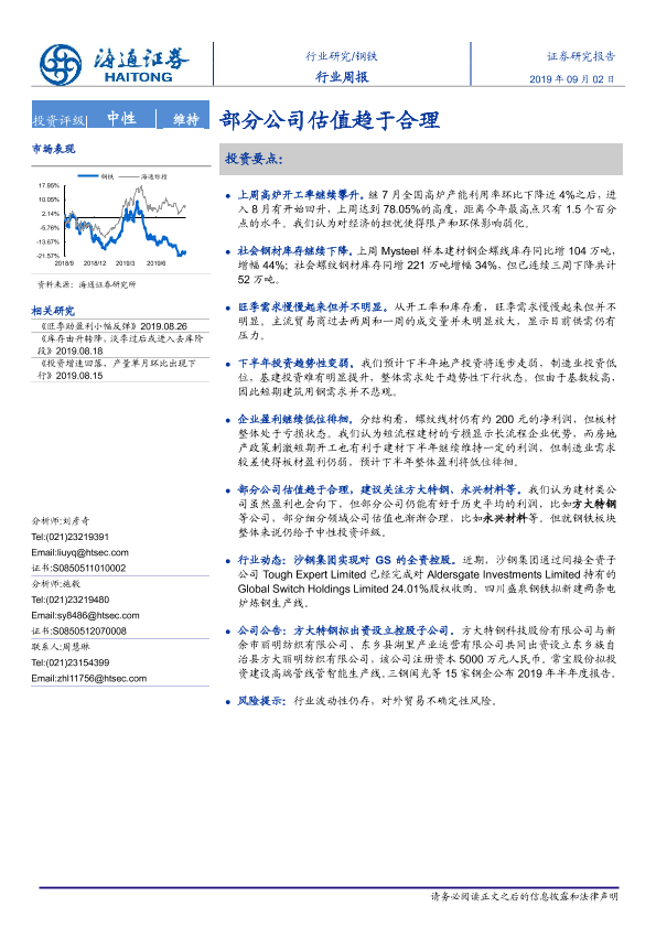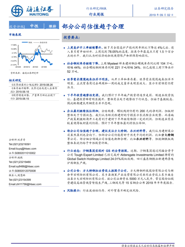 【海通证券】【20190902】20190902-海通证券-钢铁行业周报:部分公司估值趋于合理-14页