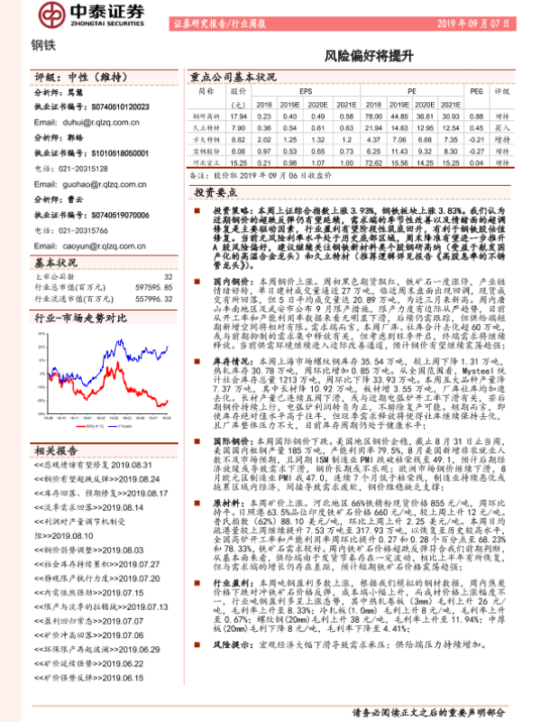 【中泰证券】【20190907】20190907-中泰证券-钢铁行业周报:风险偏好将提升-14页