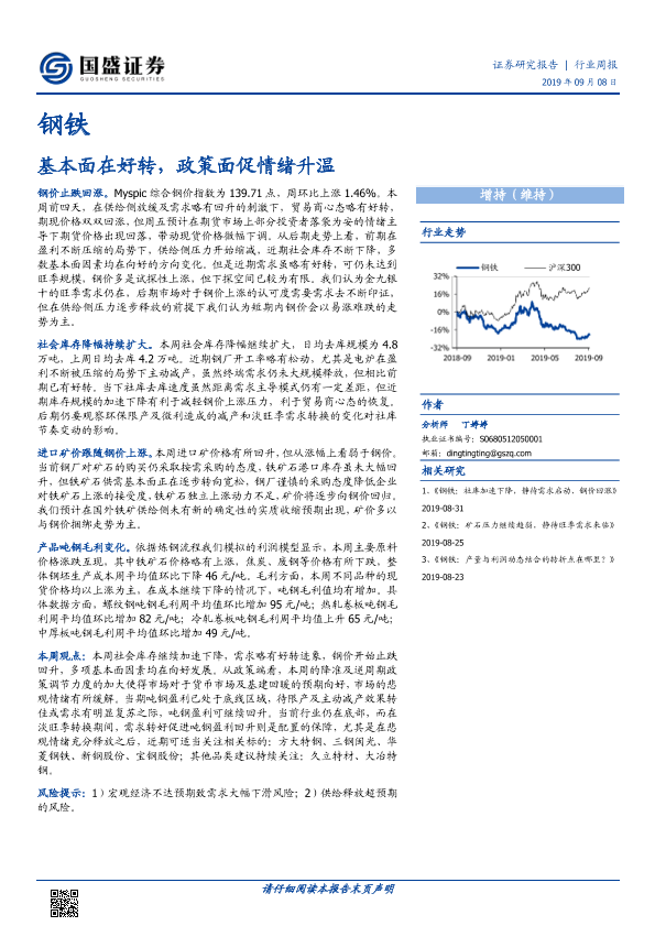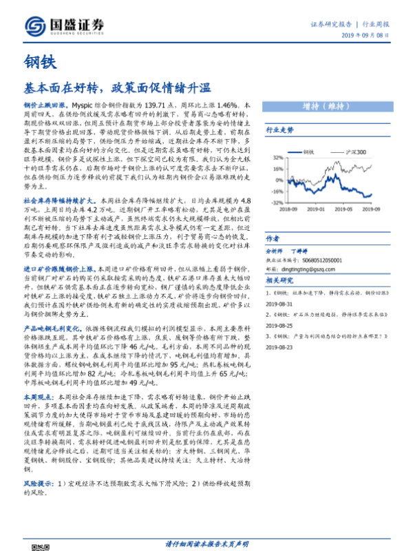 【国盛证券】【20190908】20190908-国盛证券-钢铁行业周报:基本面在好转,政策面促情绪升温-10页