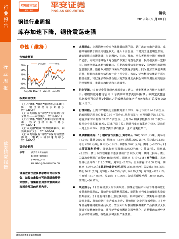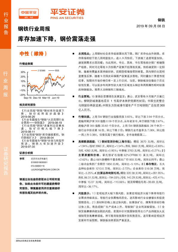 【平安证券】【20190908】20190908-平安证券-钢铁行业周报:库存加速下降,钢价震荡走强-5页