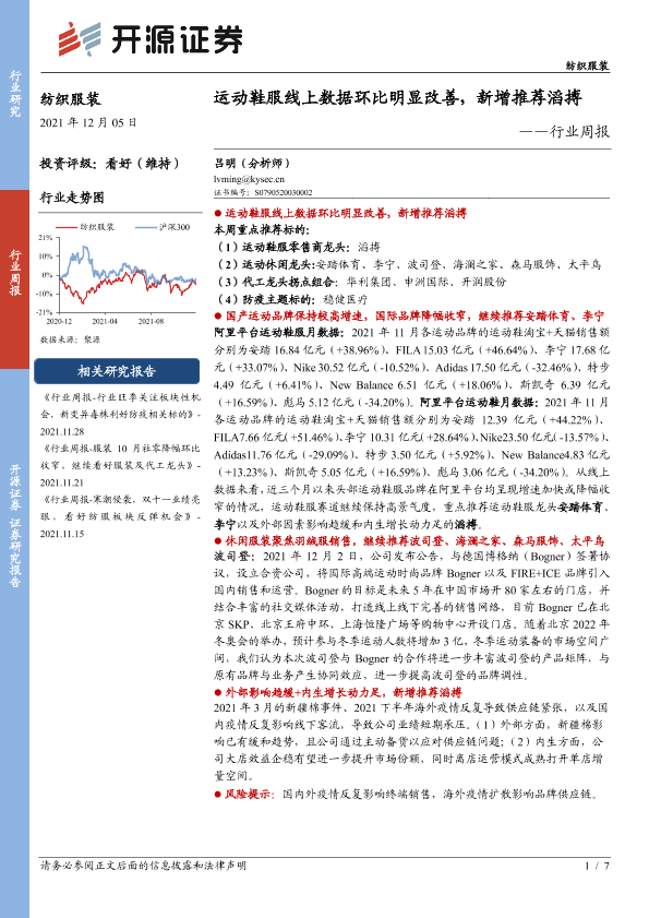 【开源证券】【20211205】纺织服装行业周报:运动鞋服线上数据环比明显改善,新增推荐滔搏-7页