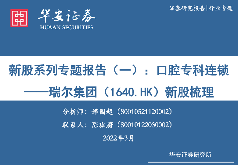 【华安证券】【20220309】新股梳理:瑞尔集团(1640.HK)新股系列专题报告(一),口腔专科连锁-15页