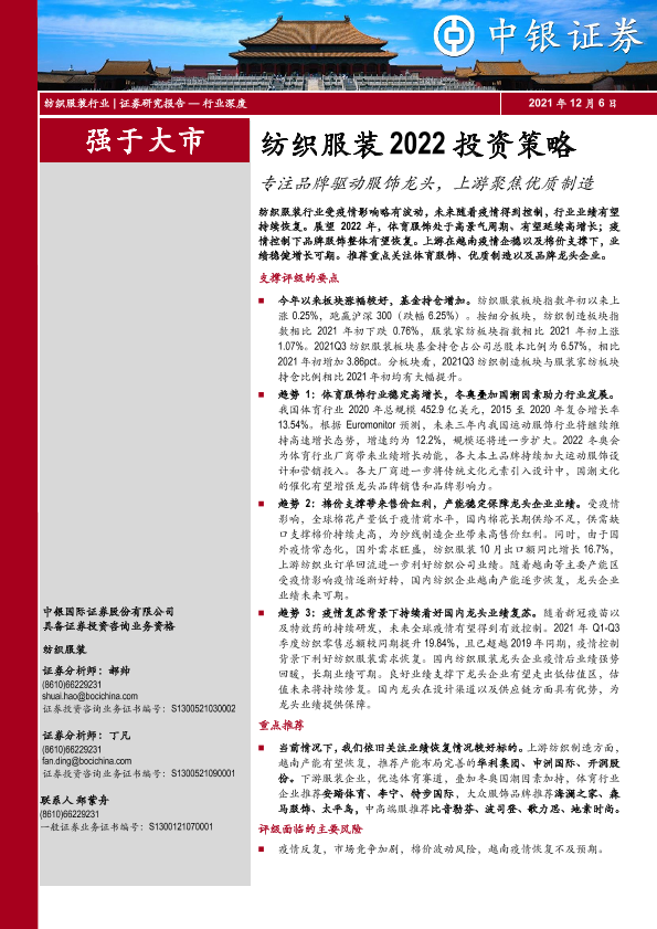 【中银证券】【20211206】纺织服装2022投资策略:专注品牌驱动服饰龙头,上游聚焦优质制造-29页