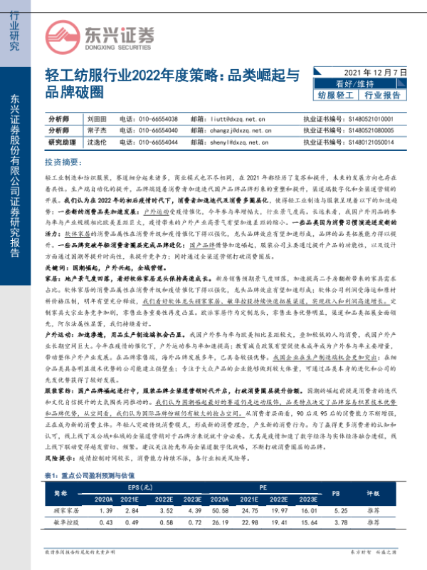 【东兴证券】【20211207】轻工纺服行业2022年度策略:品类崛起与品牌破圈-28页