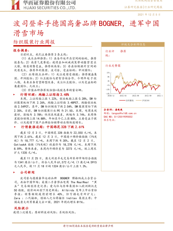【华西证券】【20211205】纺织服装行业周报:波司登牵手德国高奢品牌BOGNER,进军中国滑雪市场-18页