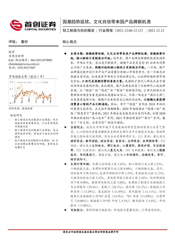 【首创证券】【20211212】轻工制造与纺织服装行业周报:国潮趋势延续,文化自信带来国产品牌新机遇-17页