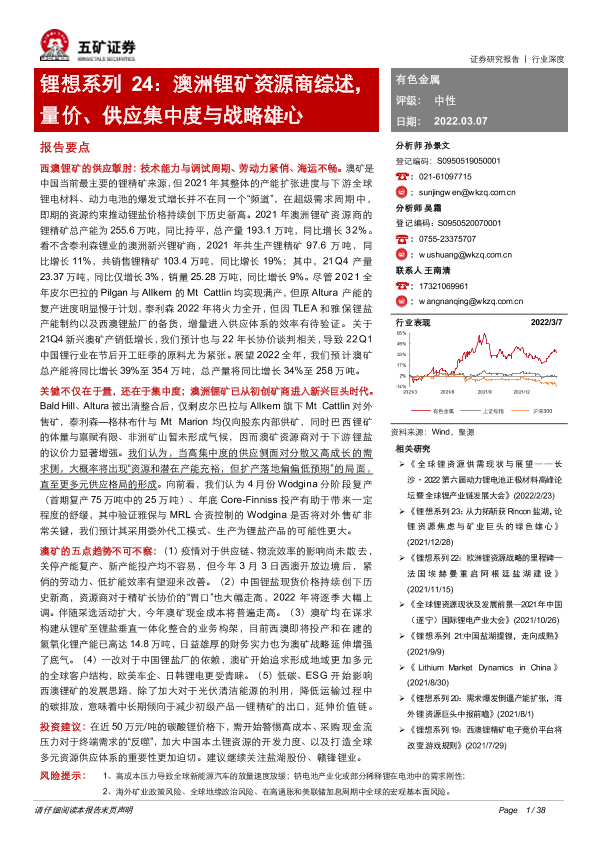 【五矿证券】【20220307】有色金属行业锂想系列24:澳洲锂矿资源商综述,量价、供应集中度与战略雄心-38页