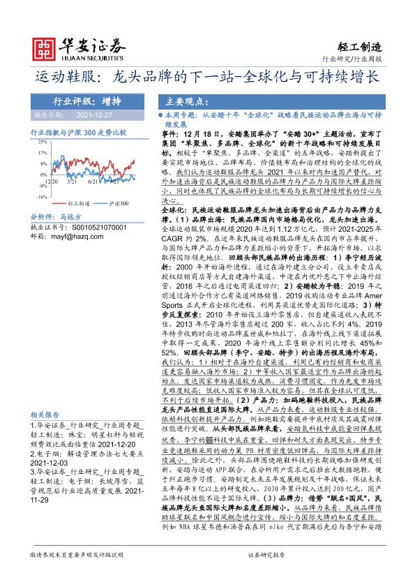 【华安证券】【20211227】20211227-华安证券-轻工制造行业周报:运动鞋服:龙头品牌的下一站-全球化与可持续增长-34页