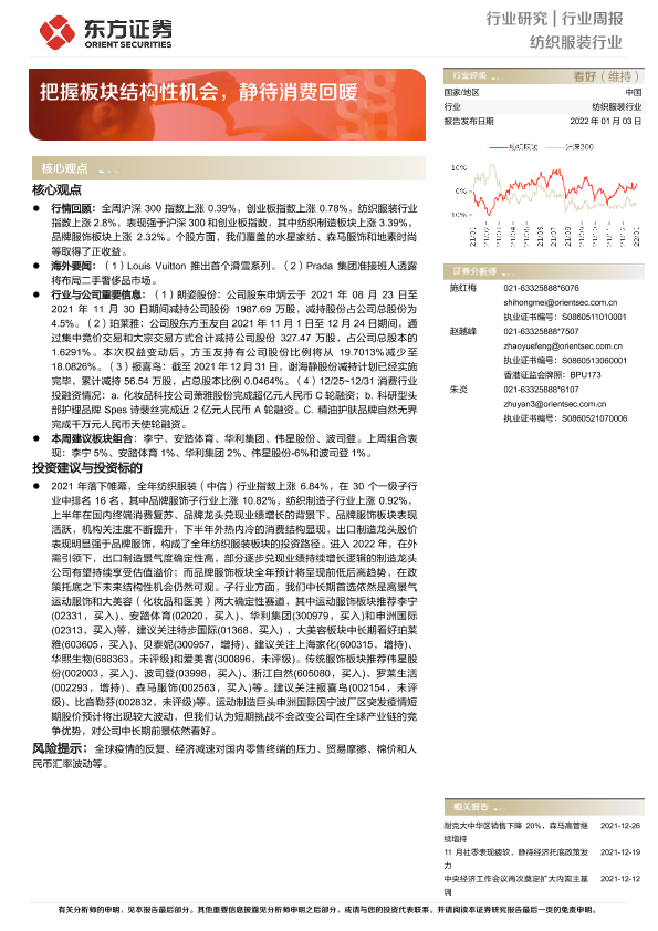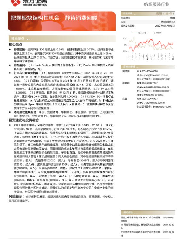 【东方证券】【20220103】20220103-东方证券-纺织服装行业周报:把握板块结构性机会,静待消费回暖-10页