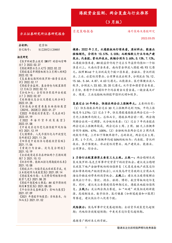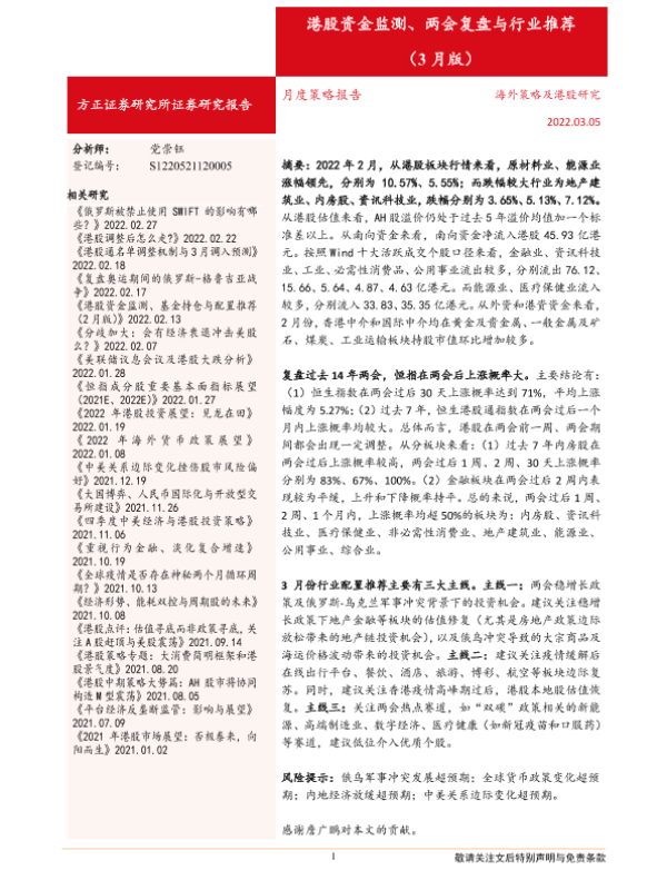 【方正证券】【20220305】月度策略报告:港股资金监测、两会复盘与行业推荐(3月版)-18页