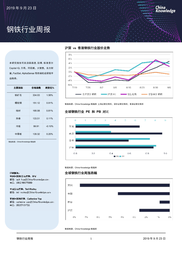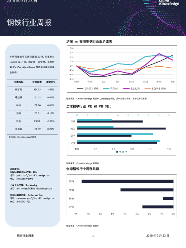 【China Knowledge】【20190923】20190923-China Knowledge-钢铁行业周报-11页