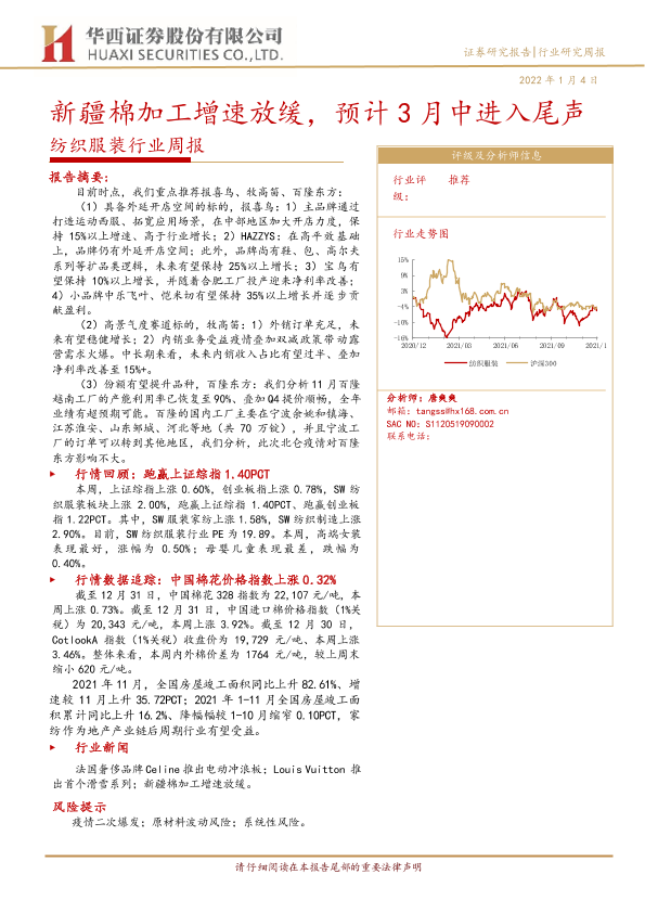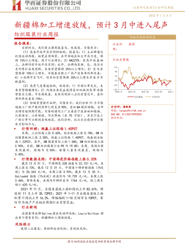 【华西证券】【20220104】20220104-华西证券-纺织服装行业周报:新疆棉加工增速放缓,预计3月中进入尾声-16页