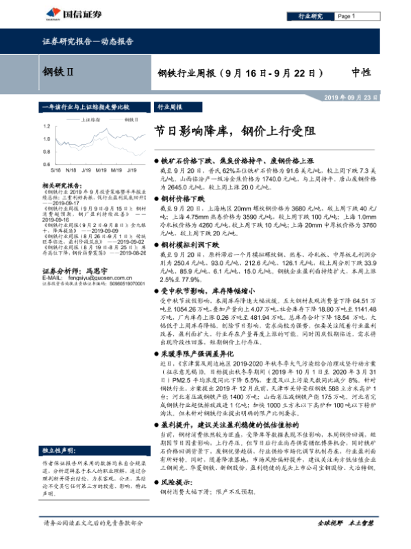 【国信证券】【20190923】钢铁行业周报:节日影响降库,钢价上行受阻-15页