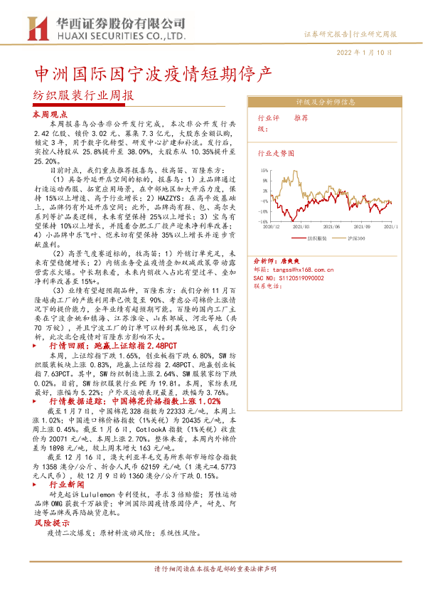 【华西证券】【20220110】20220110-华西证券-纺织服装行业周报:申洲国际因宁波疫情短期停产-15页